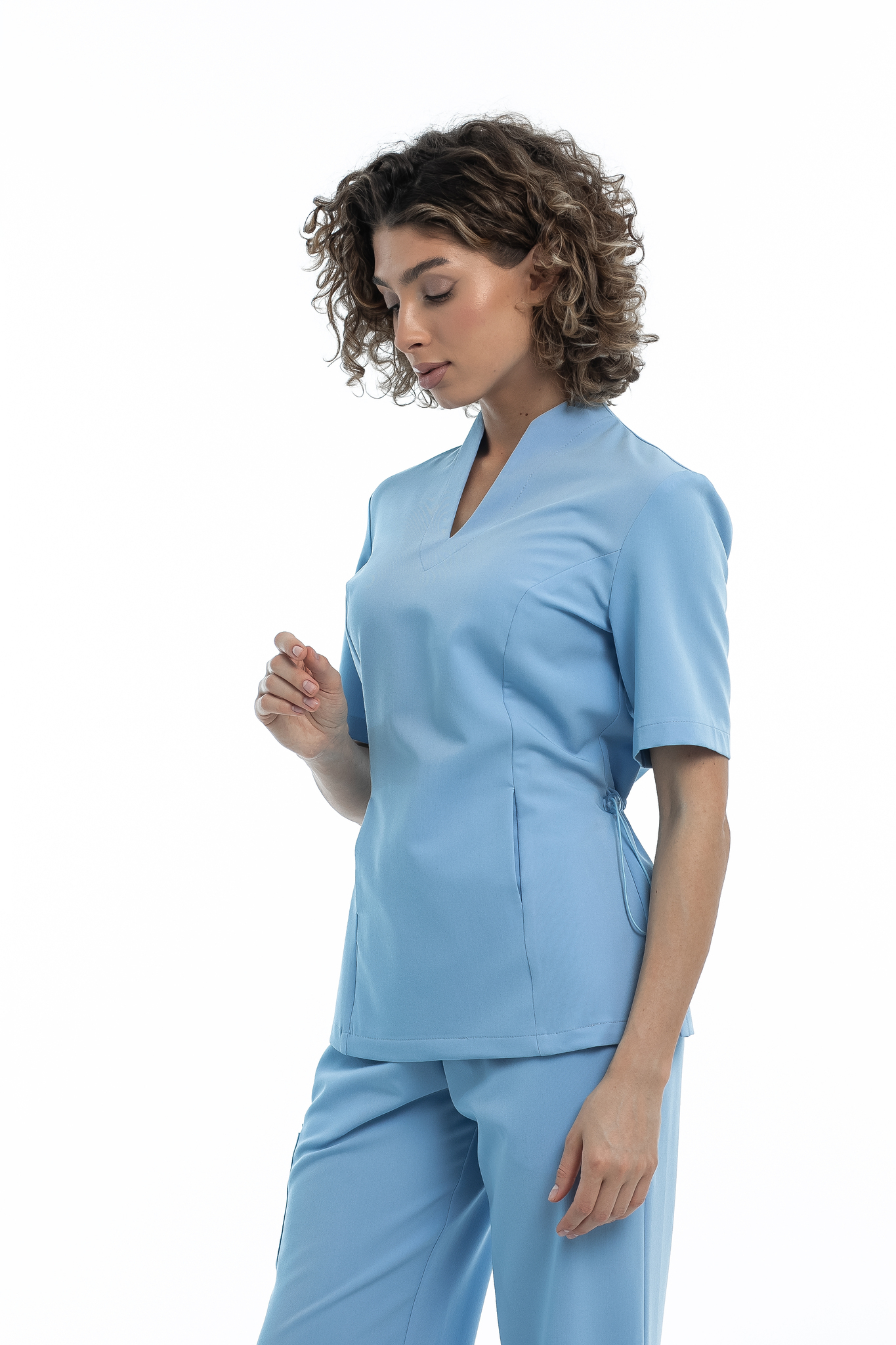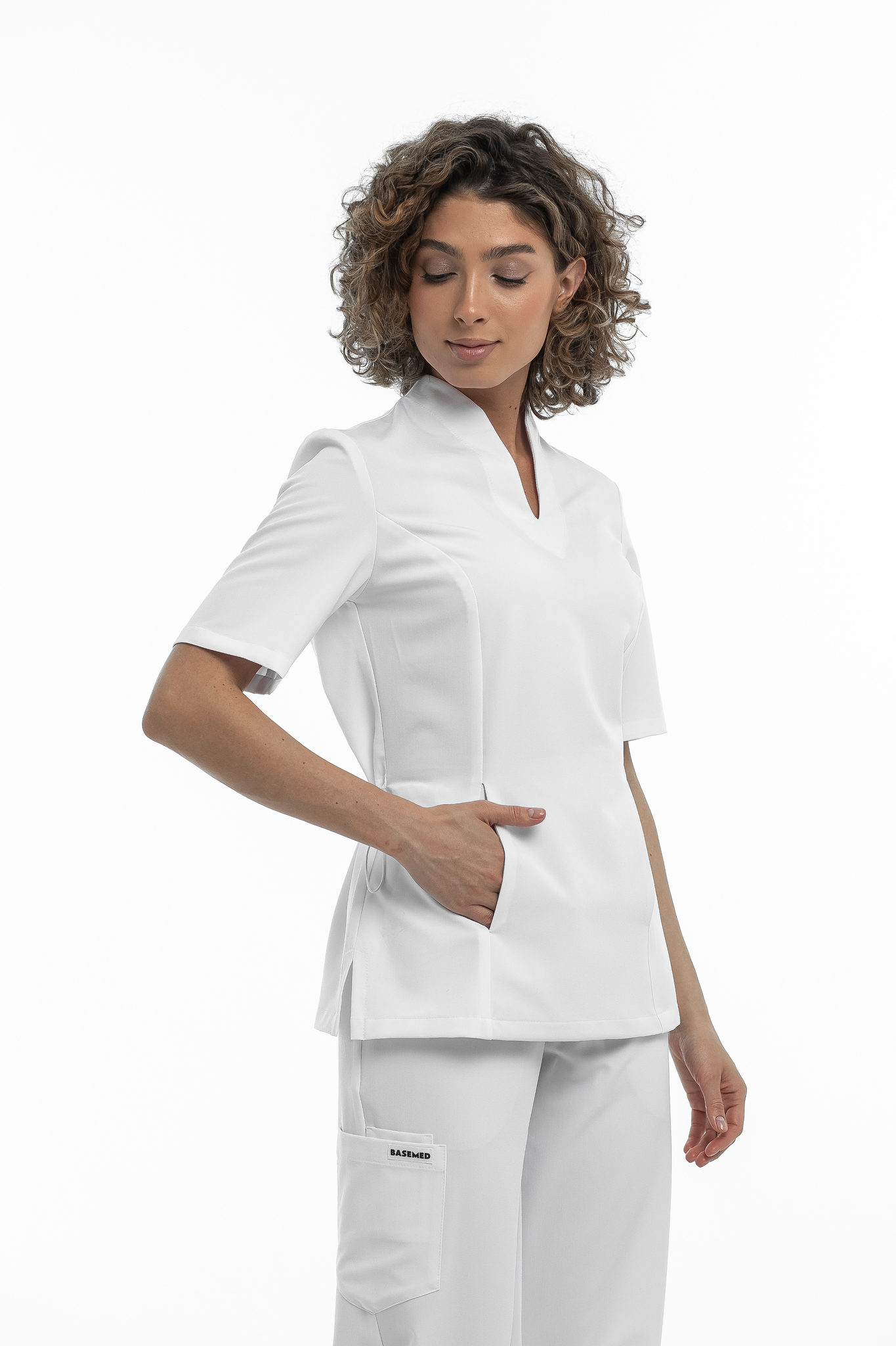 Изготовленная из премиальной поливискозной ткани (64% полиэстера, 30% вискозы, 6% спандекса), блуза лёгкая, мягкая и прекрасно «дышит», обеспечивая комфорт даже в самые напряжённые часы смены. Материал устойчив к износу и сохраняет аккуратный внешний вид после множества стирок — потому что форма должна работать так же усердно, как и вы.