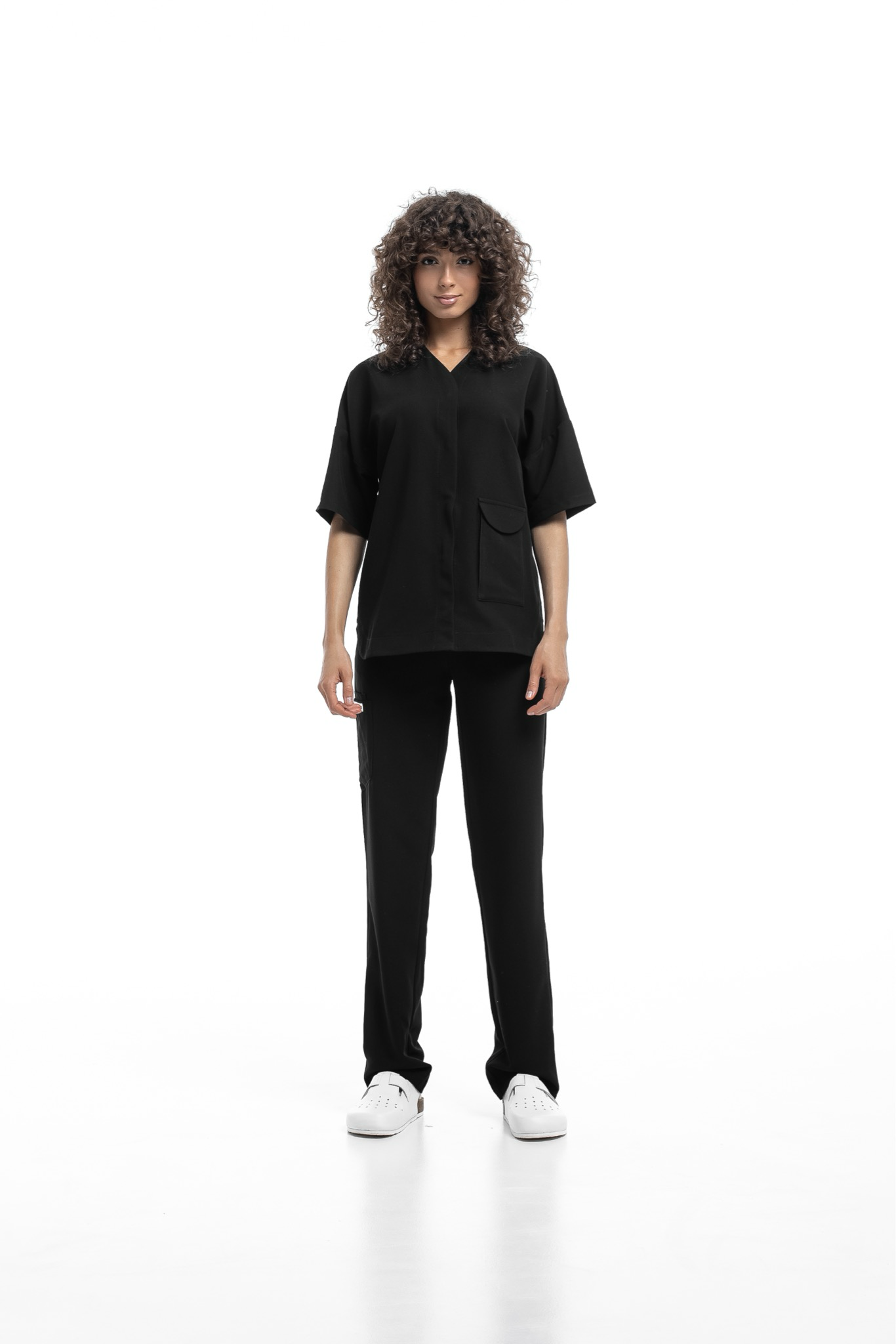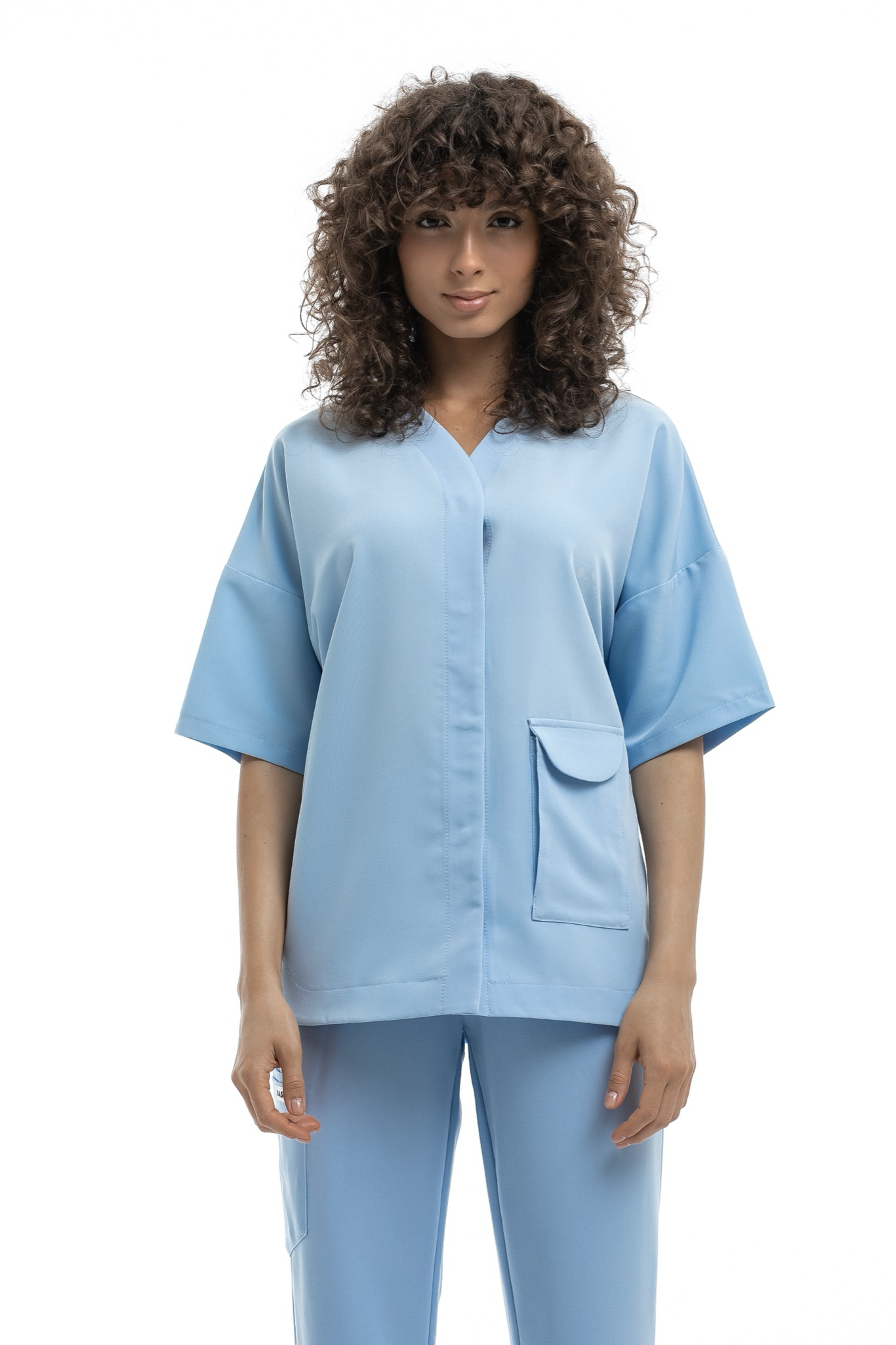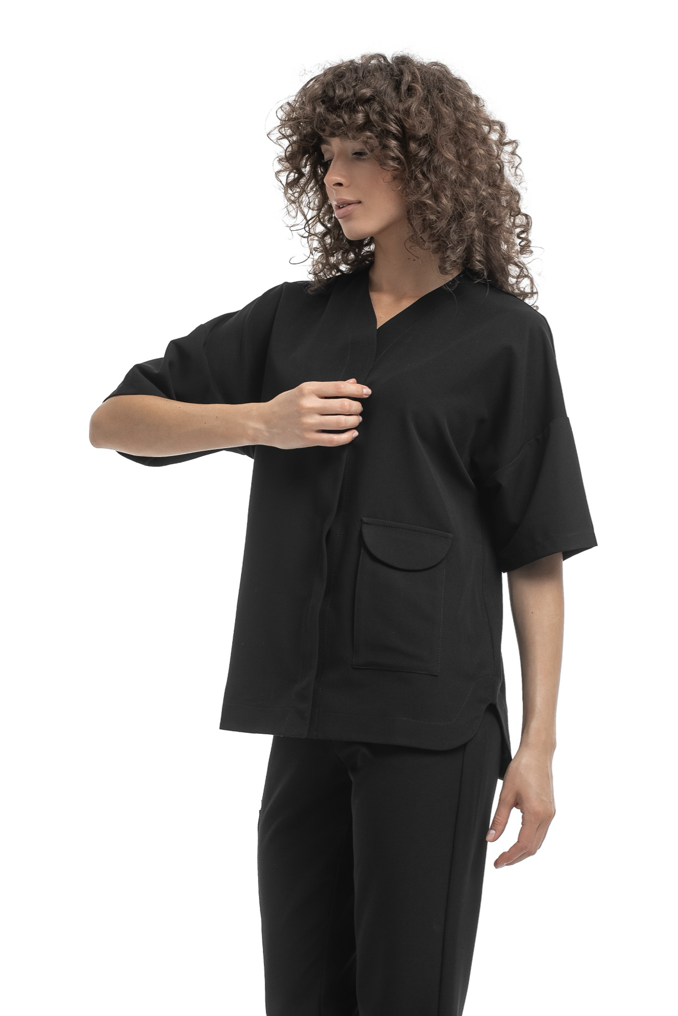 Новое изделие коллекции Freedom, сочетающее в себе практичность и комфорт. Блуза плотно застегивается на кнопки, имеет V образный вырез на горловине и вместительный накладной карман спереди. Свободный расслабленный силуэт обеспечивает комфорт в работе и не сковывает движения.