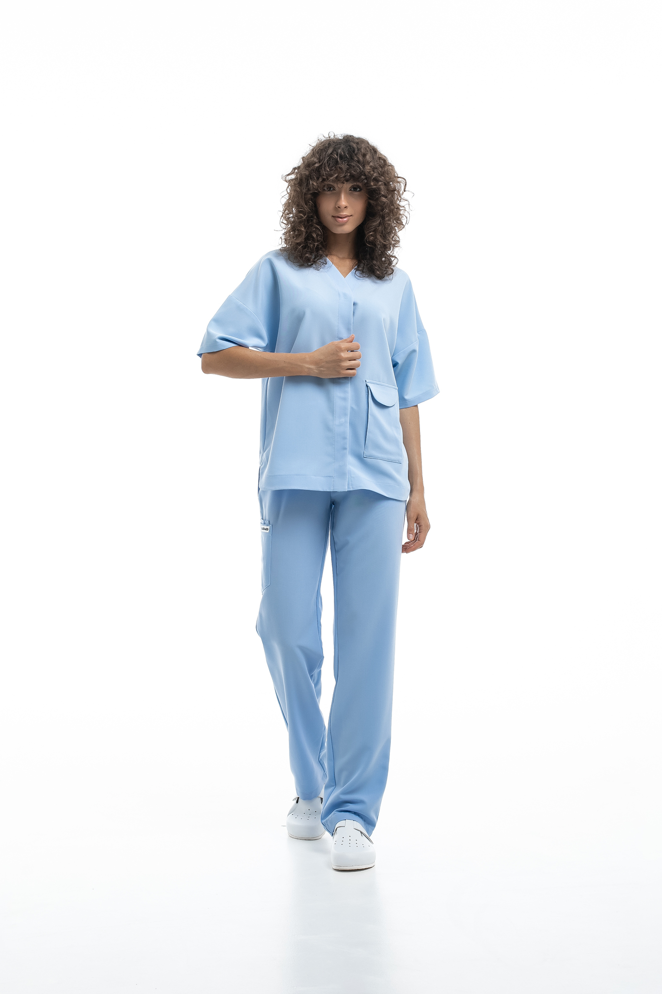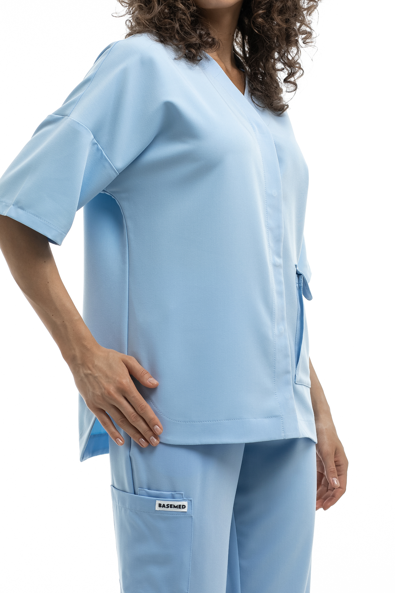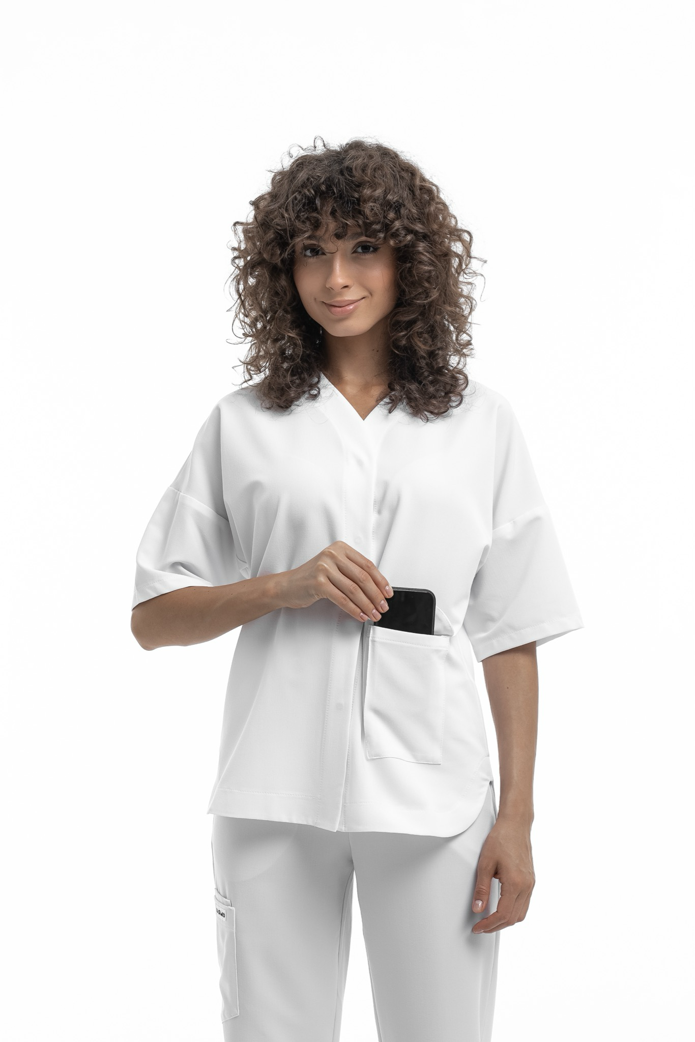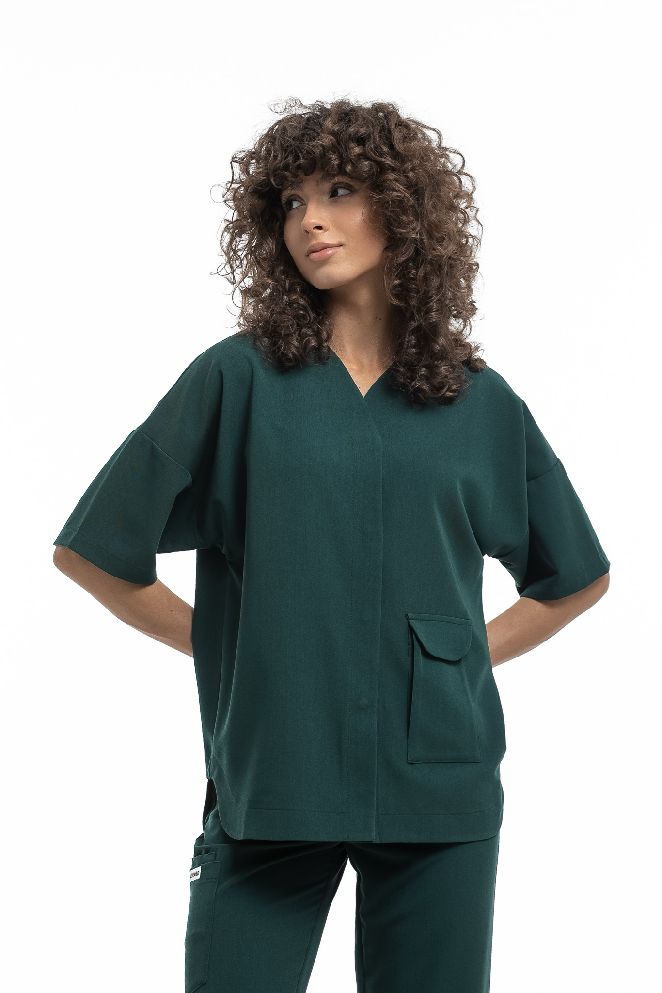 Новое изделие коллекции Freedom, сочетающее в себе практичность и комфорт. Блуза плотно застегивается на кнопки, имеет V образный вырез на горловине и вместительный накладной карман спереди. Свободный расслабленный силуэт обеспечивает комфорт в работе и не сковывает движения.