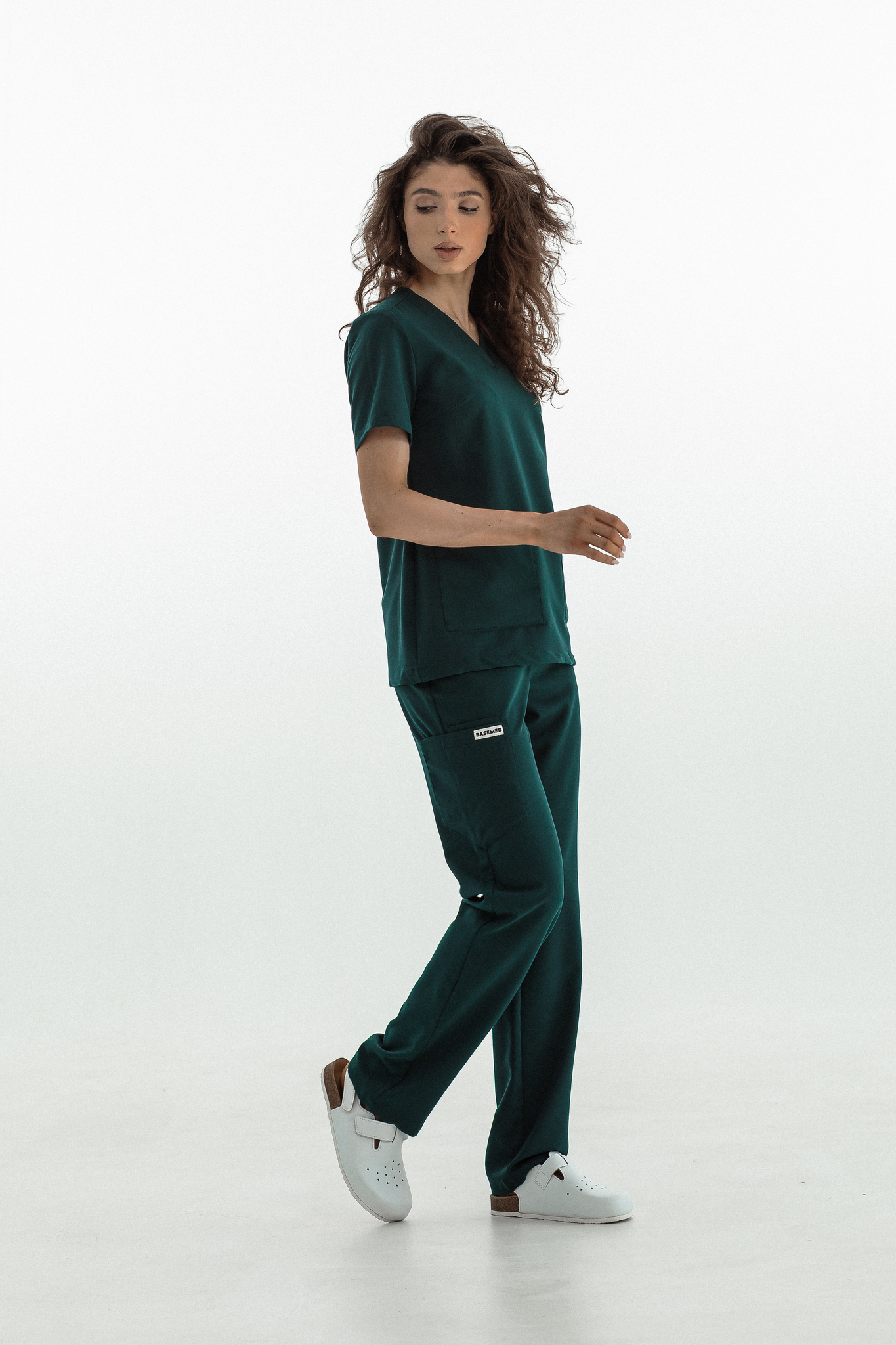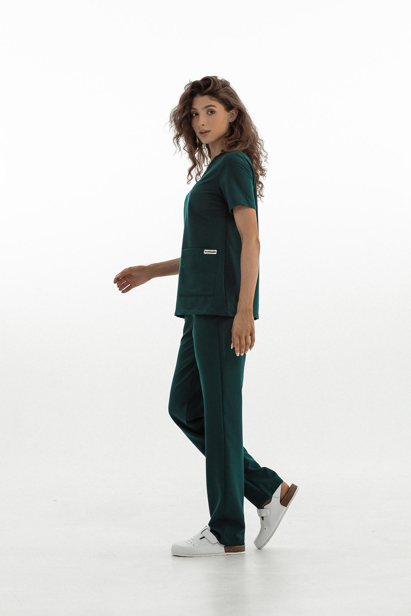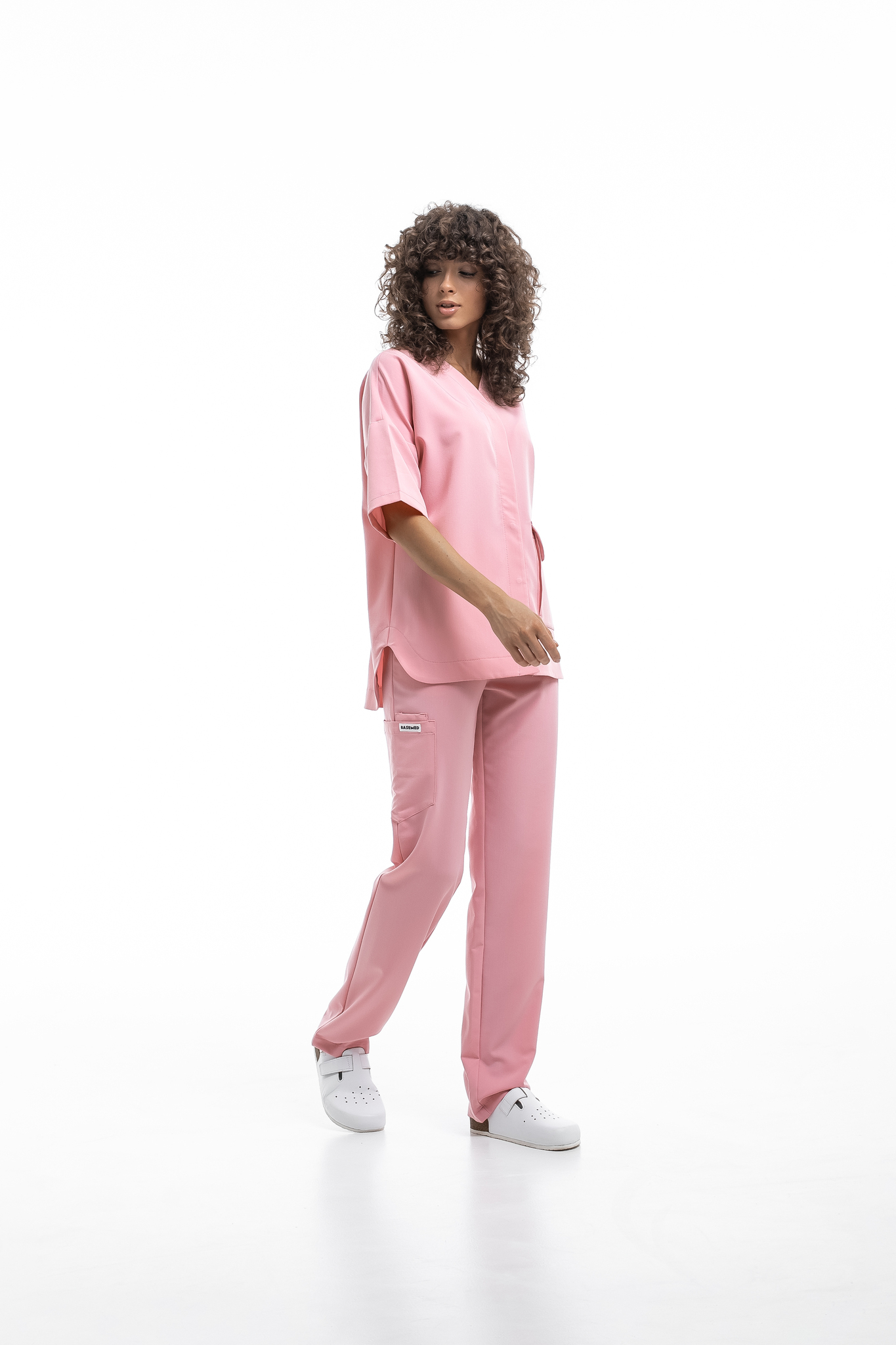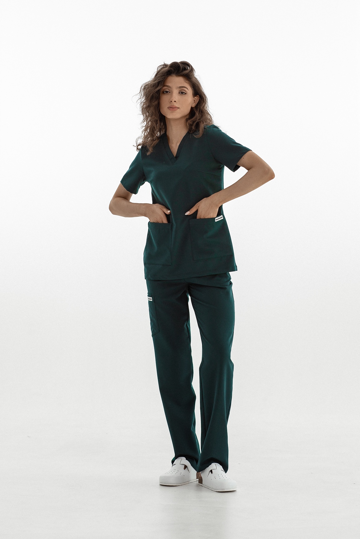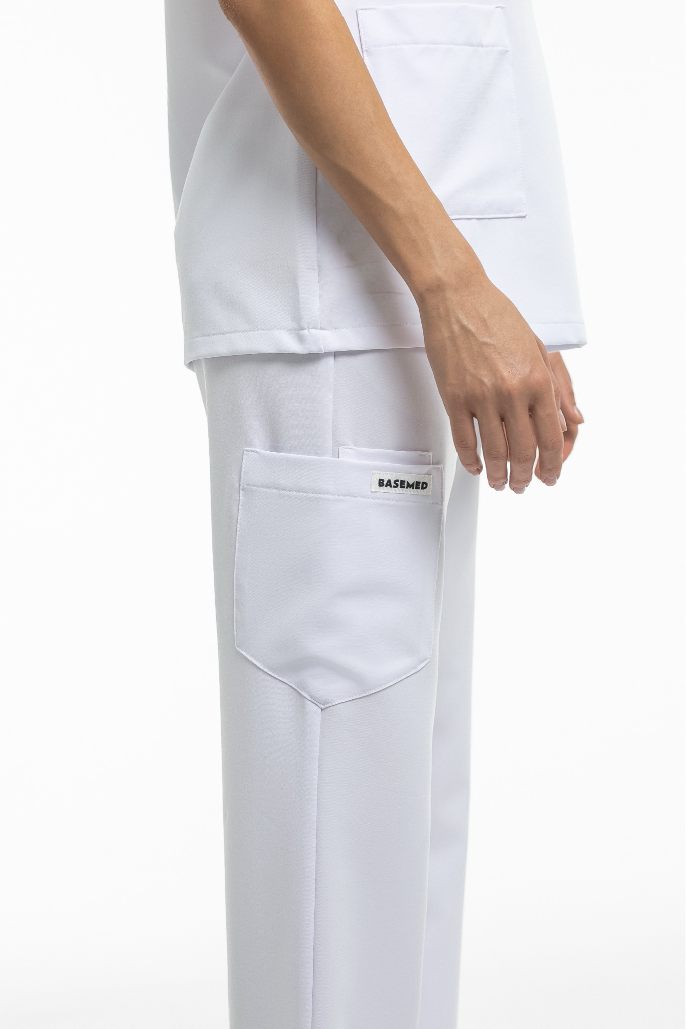 Прямые брюки на резинке и на завязках. Эта модель позволит с комфортом отработать даже самую долгую смену за счет удобной посадки и возможности отрегулировать брюки в зоне талии. На брюках есть 6 карманов: 2 передних, 2 задних и 2 накладных на левой штанине.