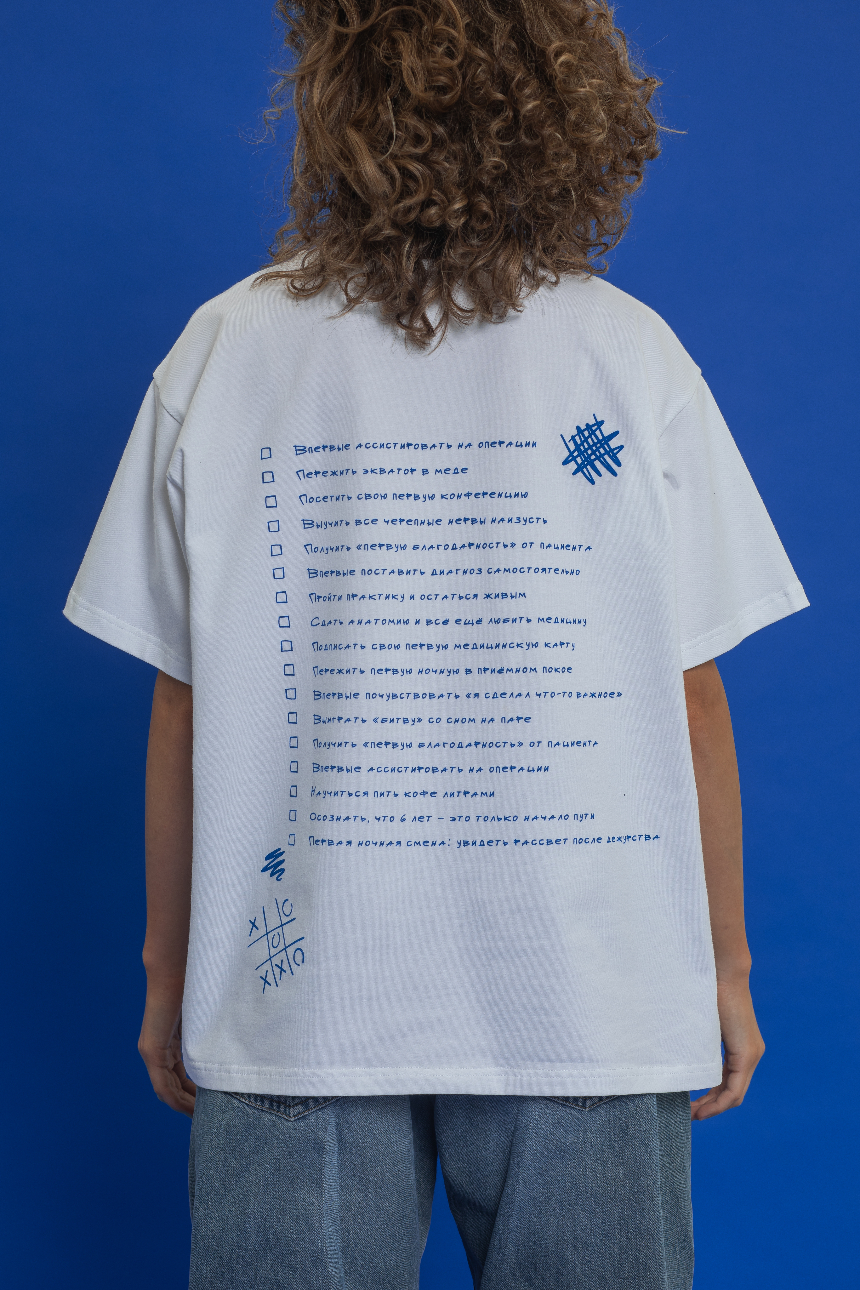 Футболка-чек-лист студента из дропа OFF SCRUB — честная версия медицинского пути.