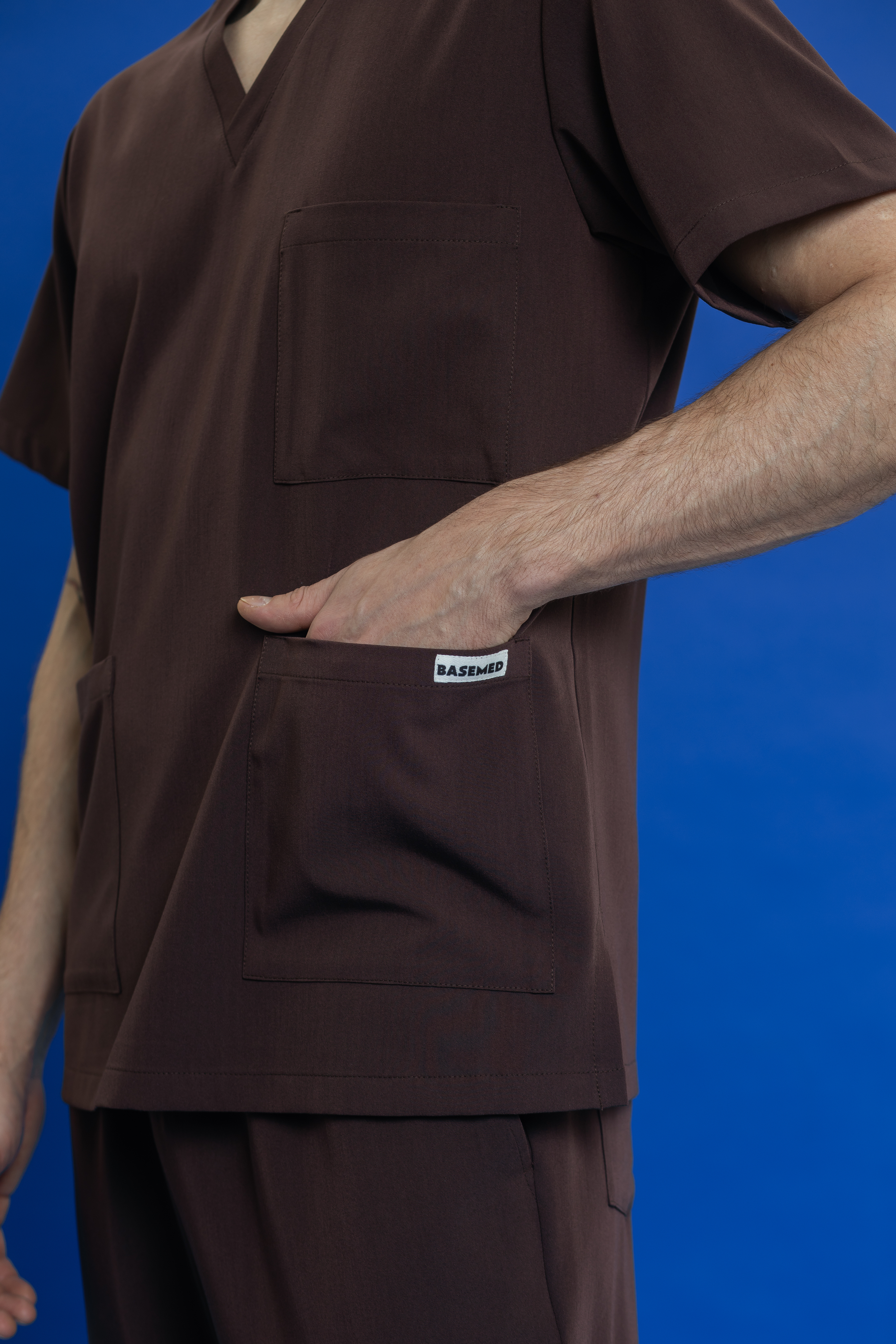 Комплект выполнен из сертифицированной медицинской ткани. Она устойчива к загрязнениям, легко отстирывается и практически не мнётся. Комплекты ощущаются как вторая кожа.
