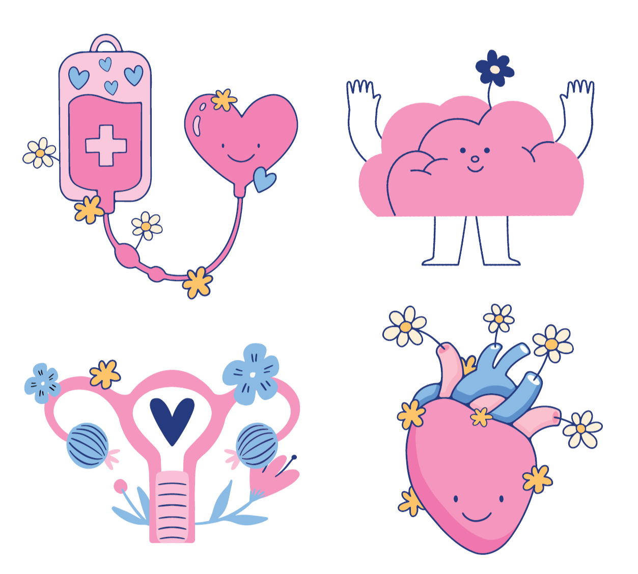 В дизайне набора — милые иллюстрации, вдохновлённые анатомией и медициной. Каждая из них символизирует то, с чем ежедневно работают врачи и медсёстры — заботу о жизни, здоровье и будущем.